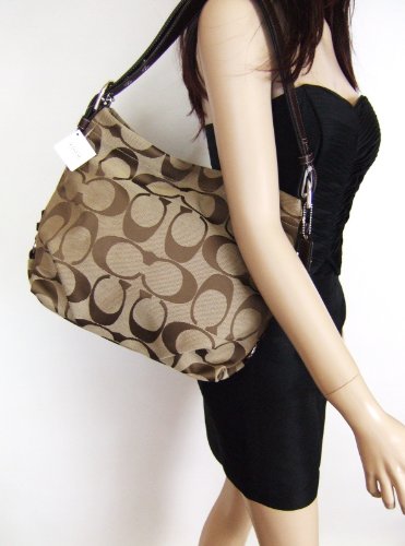Classic and sophisticated Signature hobo bag in khaki brown color. Keep all your essentials well organized in this gorgeous handbag. Great for any event and occasion.Read more Coach 24CM Signature Duffle Shoulder Crossbody Bag, 15067 Khaki Mahogany, Large