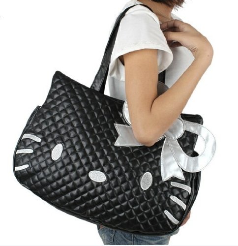 Best Hello Kitty Head Shaped Tote Shoulder Bag Black High Quality Women/Girl Fashion Work School Office Lady Student