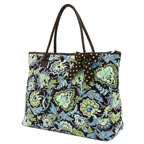 Click to get Decent Price Belvah Quilted Floral Large Tote Bag (Brown/ Lime)