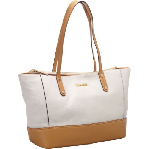 Click to get Decent Price Calvin Klein Key Item Leather Tote (White/Camel)